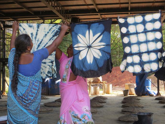 We still dream, though, of cultivating indigo on Auroville lands and to extract the dyes ourselves. The dye-yielding plant not only has the potential to revive barren lands and could provide much needed income to rural women gatherers, it also yields compost.