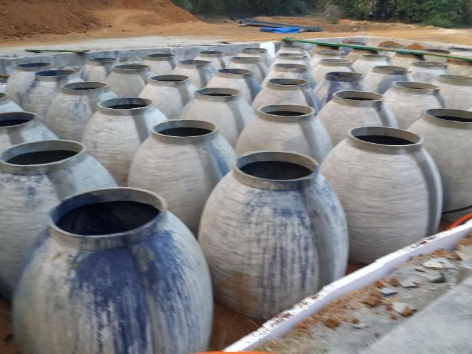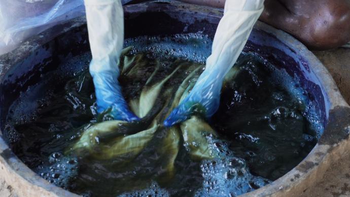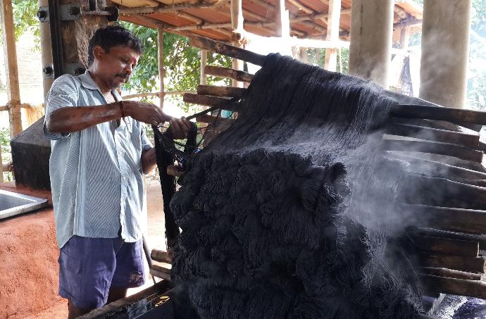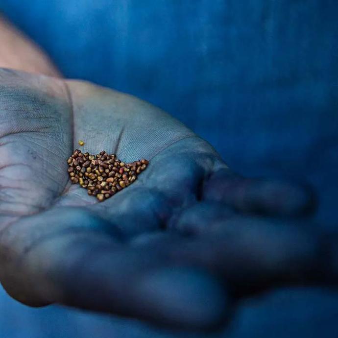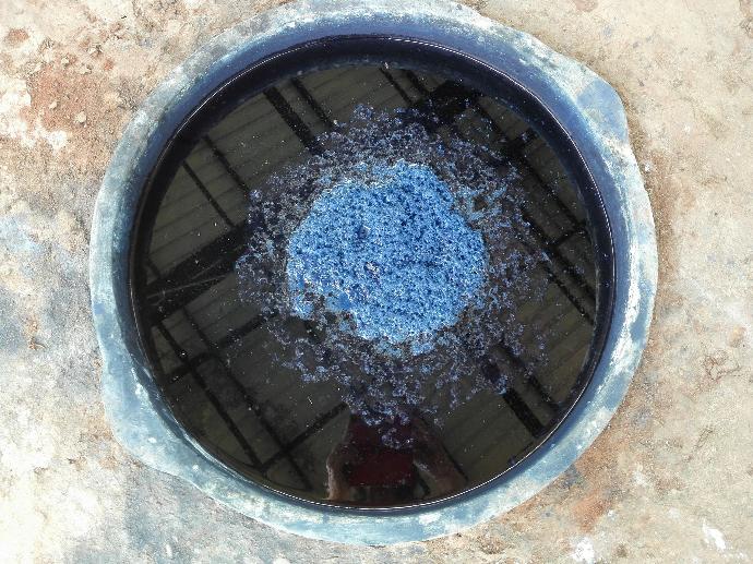 Our beginnings: finding a family that had kept the ancient knowledge of the natural indigo fermentation dyeing processes alive for generations - and bringing it back to 100% natural. The lack of smell gave it away! Since starting with a few 100 litre vats we now have 62 submerged vats of 1000 litres each. They were all fabricated locally in Auroville and are maintained like babies - yes that's how we see them, they need food & care & love every day. The organic growth that we have experienced is due to dedication, hard work, loyal customers & the support of Levi Strauss & Co. L.S.&Co. handpicked our Founder Jesus for their first Collaboratory program. Out of ten ideas around water saving, he was one to receive a grant for upscaling. We do regular lab checks to make sure that the indigo cakes we get remain unadulterated. Our supplier is located not far from us and they harvest the indigo leaves & extract the pigment through submerging & thrashing in water baths. Jesus continues to experiment and learn more. He talks about indigo & natural dyes across the world and is always interested in hearing from other experts or novices on the topic.