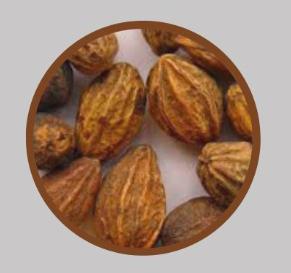 Myrobalan can be used as a mordant and as a dye needing no mordant. The outcome is a light buttery yellow or a yummy khaki, in combination with iron. It is the fruit of an India-native 30m tree that is used for dyeing.