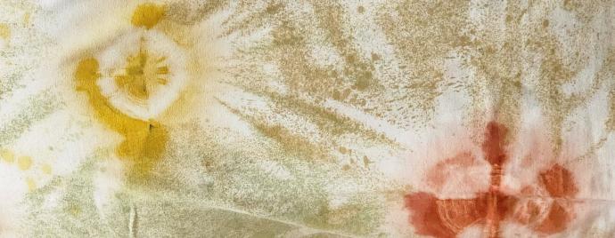 Pomegranate peel is rich in several structural forms of tannins, making it an excellent candidate for dyeing. The rind, not the fruit, gives a very lightfast colour, but the hue of the yellow produced is linked to how ripe the fruit is.